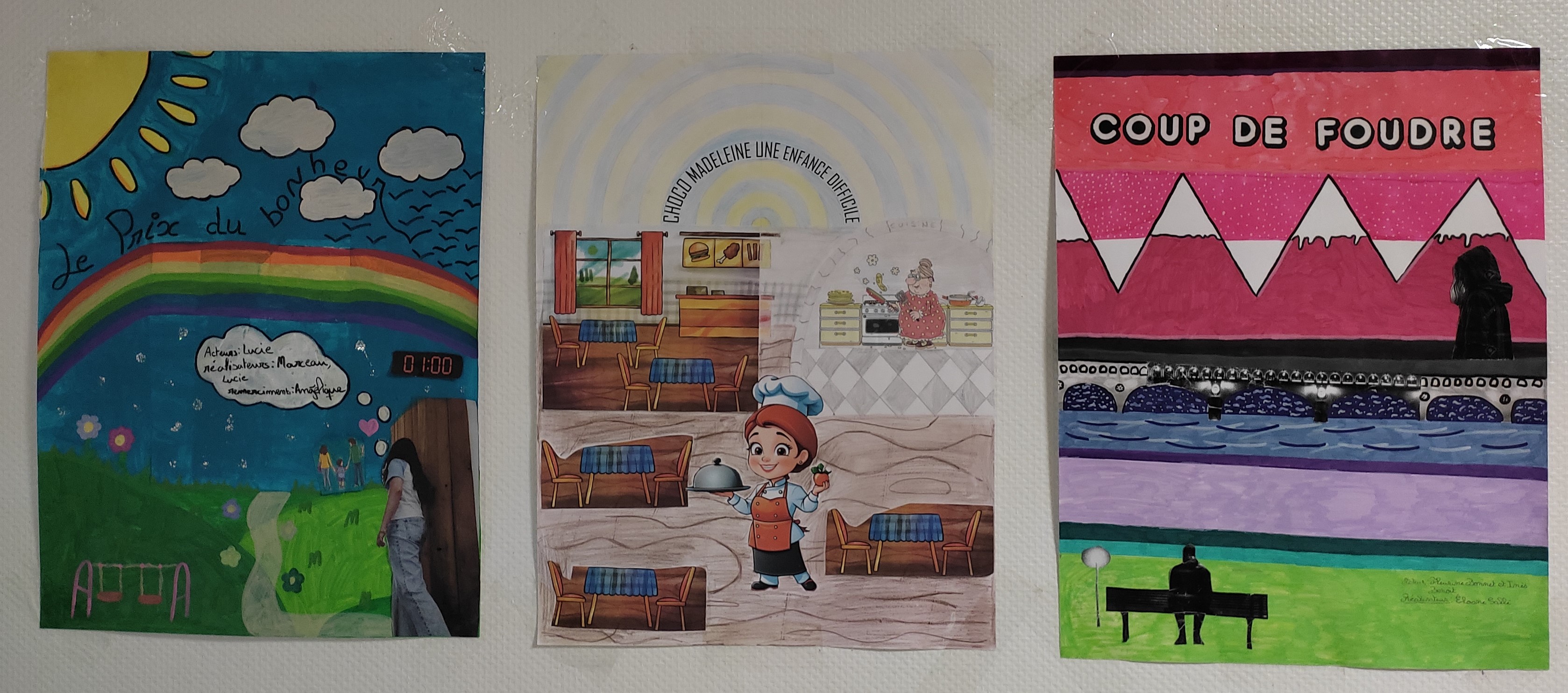 Après avoir analysé les affiches des 3 films présentés dans le cadre du dispositif "collège au cinéma", les élèves de 5èmes ont été invité à réaliser des affiches de cinéma à partir de différents synopsis fournis. L’objectif était de créer une affiche qui donne envie de voir le film en travaillant sur la composition de l’image, les couleurs pour mettre en évidence le thème de l’histoire et représenter quelques indices de l’histoire pour susciter la curiosité du spectateur.